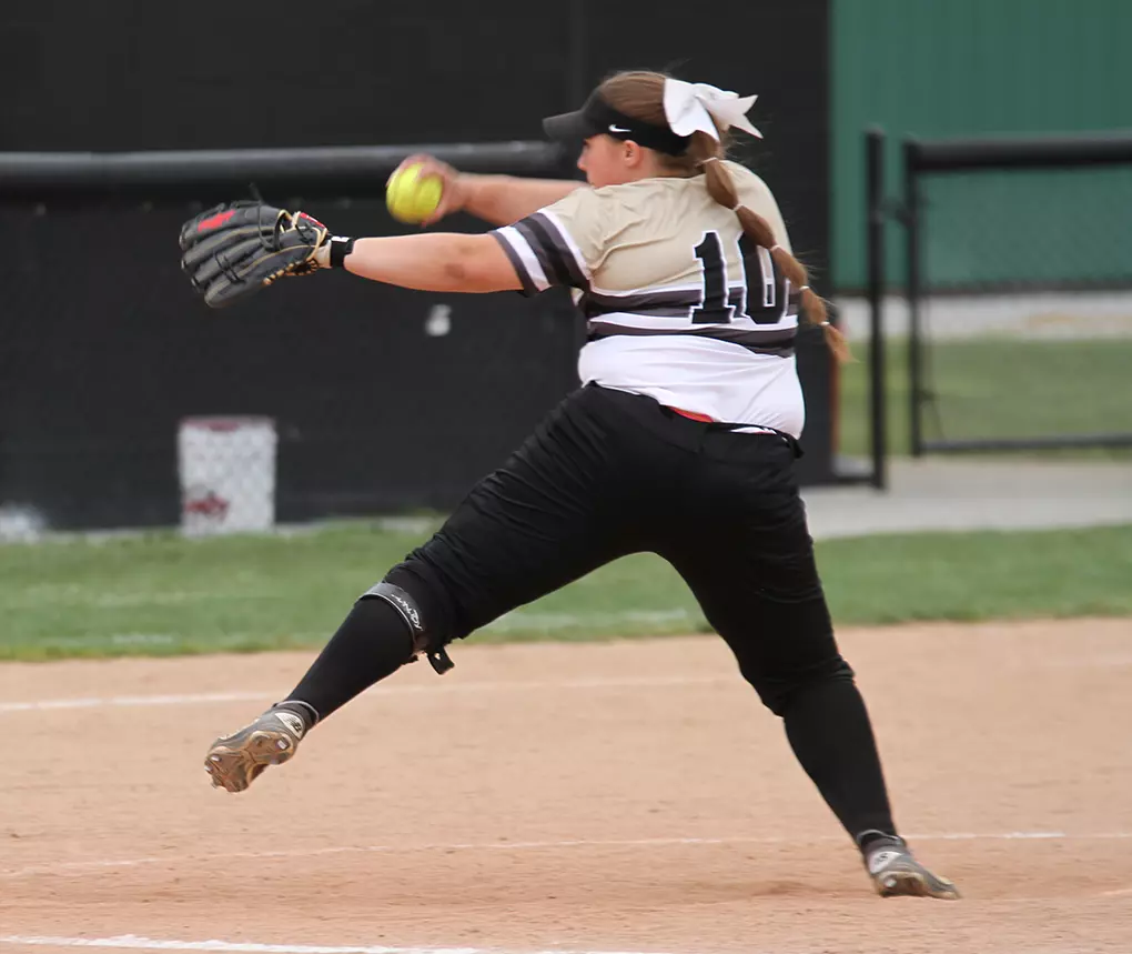 She was aided by an offense that compiled seven hits and five scores after having been on the verge of being perfect gamed and no-hit in the opener. Senior second baseman Laurren Ladwig (Crown Point, Ind.) and junior third baseman Kate Skeens (Gas City, Ind.) finished with two hits apiece, and another freshman put her name on the game's marquee as designated player Alexis Mokos (St. John, Ind.) lined a double to left center in the fifth that unloaded the bases for a 5-1 cushion.